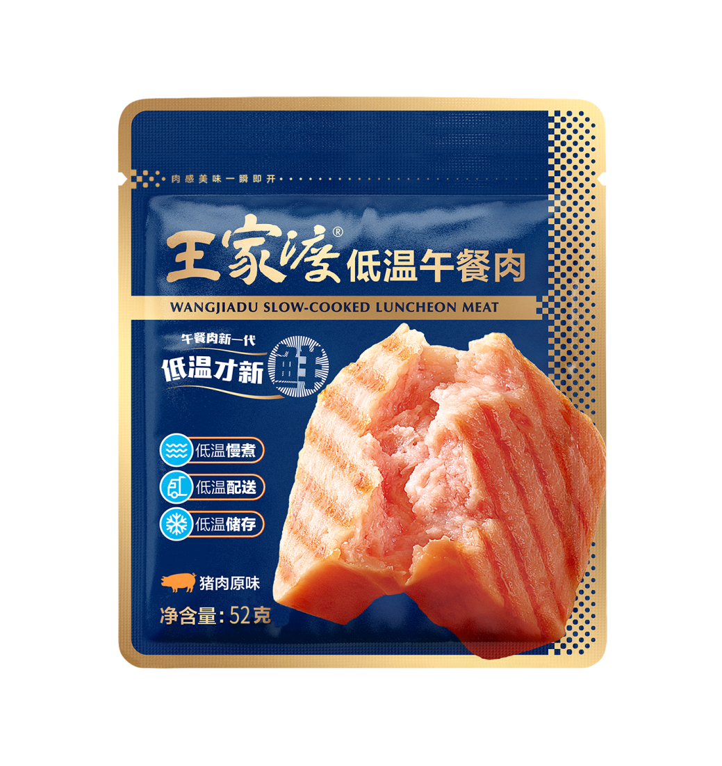 作为低温午餐然品类的引领者,王家渡午餐肉有它独特的低温制作工艺。低温使得午餐肉的肉味更加自然香浓,并保留了肉质本身的鲜嫩。王家渡低温午餐肉在它的储存方式以及配送方式也有更高的标准。皆在0-4℃的低温环境下储存,并且全程使用完整的顺丰快递冷链运输配送。这使得午餐肉的水分流失更少,在保留其脆、弹、糯、肉感十足的口感同时,能充分锁住水分、锁住新鲜、锁住营养。